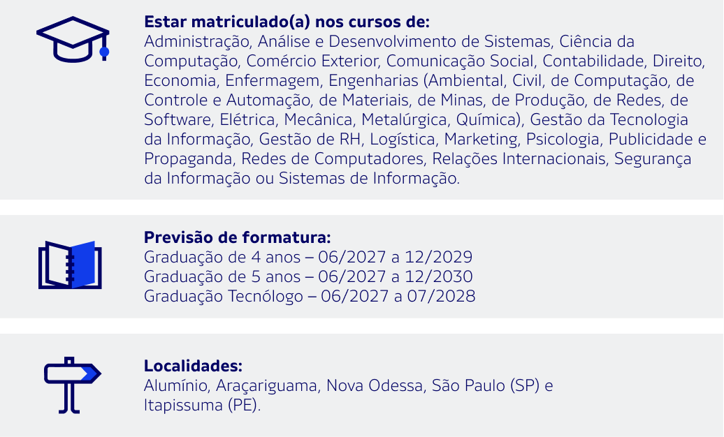 Todas as informações sobre pré-requisitos, regiões, cursos e outras detalhes das vagas do programa estão disponíveis neste site.